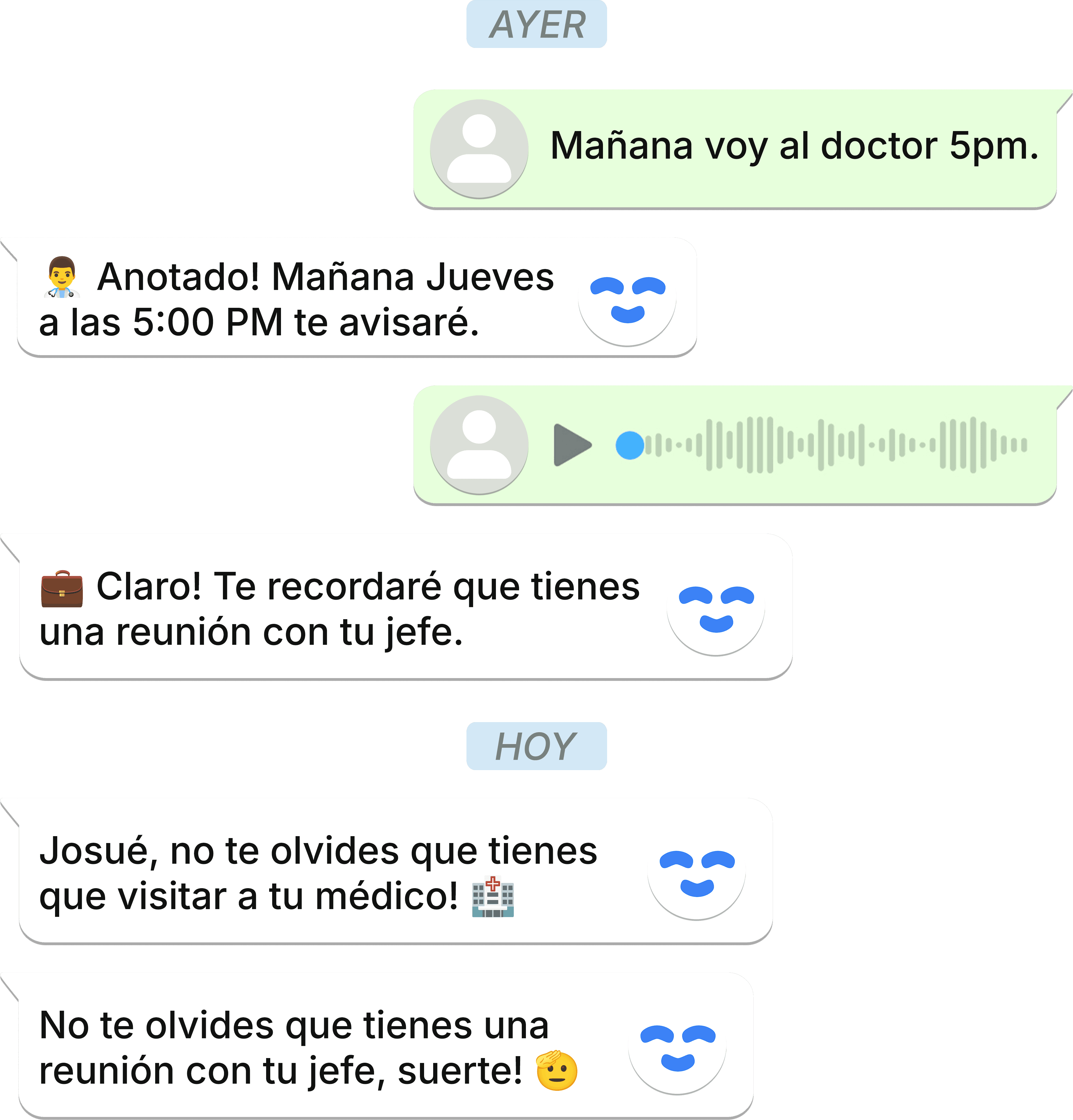 Envía un audio a Nuubo para tu mayor comodidad. Nuubo te entenderá perfectamente y guardará el recordatorio.